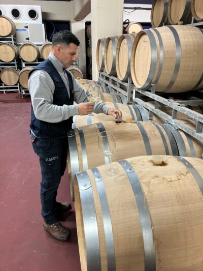 最初の訪問はシチリアのパイオニア的生産者、プラネタが州内に持つメンフィのウルモワイナリーとディスペンツアワイナリーだ。