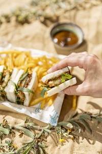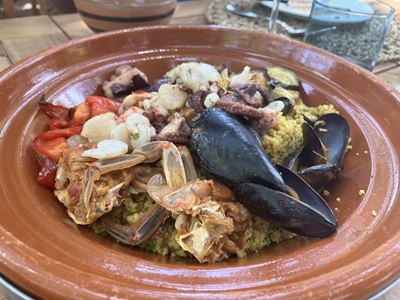 ちょうど夕日が沈む時間という素晴らしいタイミングで到着しました。このエリア全体に漂う、地中海のハーブの香りが、更なるリラックス感を与えてくれます。「自然と人間が調和している」という言葉がぴったりな場所。心が解きほぐされていくのを感じます。