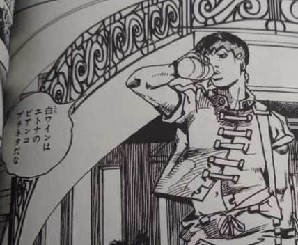 といいますのも、「ジョジョの奇妙な冒険」の大人気キャラクターである岸部露伴さんが、プラネタのエトナ・ビアンコをお気に入りのワインとして手料理と一緒に楽しんでいることを発見しましたので、そのシーンが収められたコミックブックをお持ちしました。