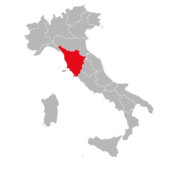 「キアンティ」も「キアンティ・クラッシコ」も、イタリア中部、ティレニア海側に位置するトスカーナ州で造られる赤ワインです。トスカーナ州は、ワインの生産量でいうとそこまで多くはないのですが、たくさんの高品質ワインが造られるイタリアを代表する銘醸地です。