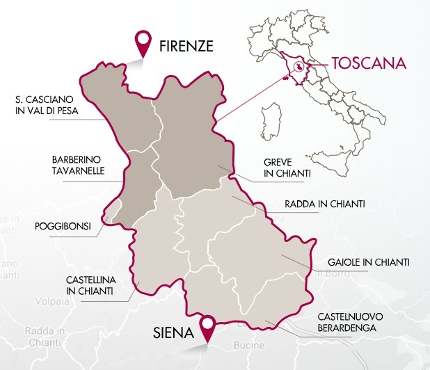 キアンティ・クラッシコ地区に含まれる7つの自治体で、厳しい規定をクリアしたワインのみがキアンティ・クラッシコを名乗ることができます。