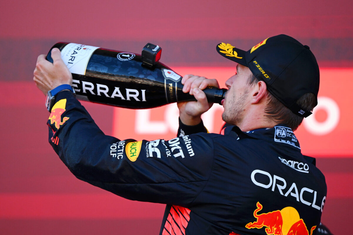 肝心のレースはといいますと、レッドブルのマックス・フェルスタッペン選手が2位に大差をつけて、昨年に引き続き優勝を決めました。表彰台で味わうのはやっぱりフェッラーリ!