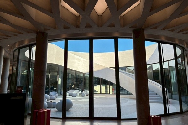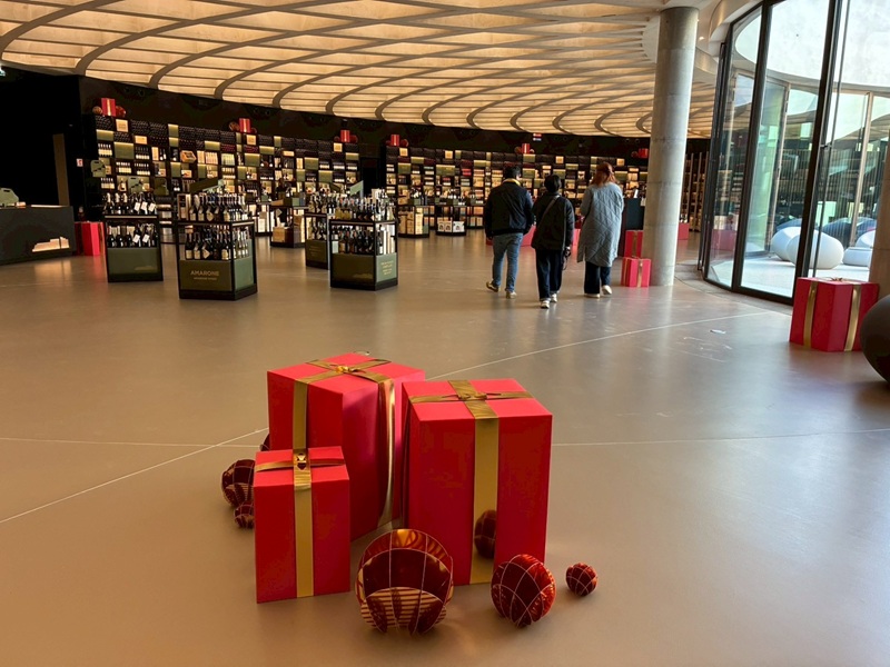 そして、今年2025年、満を持してオープンした“Monteleone21”は、本社社屋の通りを挟んだ向かい側にある巨大複合施設です。館内にはワインショップ、ワインバー、レストランが入っており、訪問時はアーティストによるインスタレーションもありました。