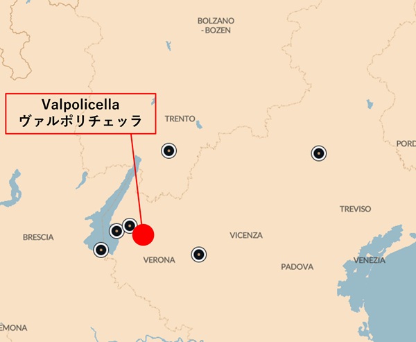 イタリアが誇る偉大な赤ワインの一つにアマローネ・デッラ・ヴァルポリチェッラ (Amarone della Valpolicella)という銘柄があります。直訳すると「ヴァルポリチェッラのアマローネ」。その名の通り、このワインはヴェネツィアを有する北イタリアのヴェネト州、ヴァルポリチェッラという地域で造られています。中世の街並みが残る美しい都市・ヴェローナから、車で北に30分ほど行った場所に位置しています。