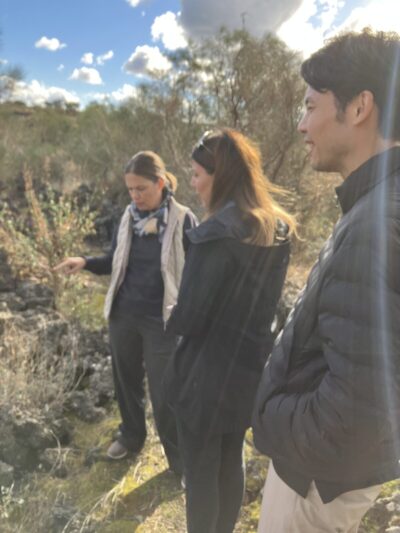 ワイナリー見学後はエトナを管轄しているワインメーカー、パトリシアさんの案内のもとワイナリー付近にある秘密の畑 “Vignetta” を案内してもらった。