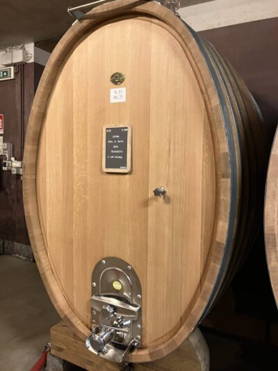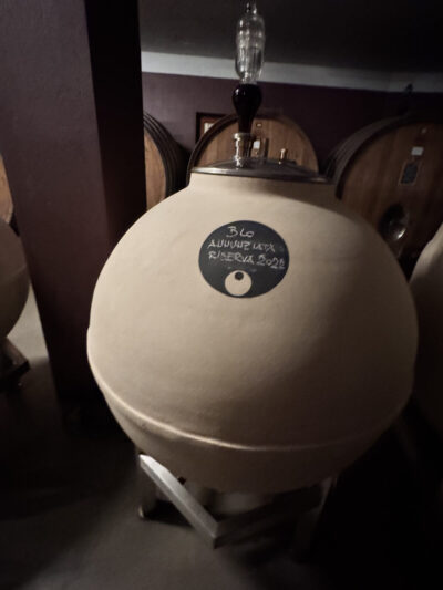 ワイナリー見学では、伝統を重んじながらも、時代に応じた革新を取り入れる姿勢が随所に感じられた。伝統的に大樽とセメントタンクを用いてきたが、発酵やマセラシオン期間自体は昔から大きく変えていないという。一方で近年は、量産から品質重視へと舵を切り、より緻密な熟成管理を行うために中型樽を増やしている。さらに試験的にテラコッタの使用も始めており、その経過を慎重に見極めているとのことだった。