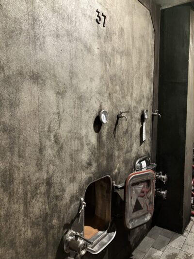 ワイナリー見学では、伝統を重んじながらも、時代に応じた革新を取り入れる姿勢が随所に感じられた。伝統的に大樽とセメントタンクを用いてきたが、発酵やマセラシオン期間自体は昔から大きく変えていないという。一方で近年は、量産から品質重視へと舵を切り、より緻密な熟成管理を行うために中型樽を増やしている。さらに試験的にテラコッタの使用も始めており、その経過を慎重に見極めているとのことだった。