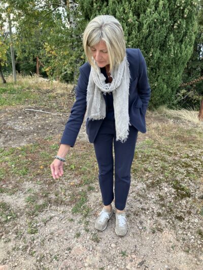 丘の上に広がる畑にも案内してもらった。山道を登った標高約400mの畑は、モンテ・ローザから吹き下ろす風の影響で、冷涼かつドライな気候にある。土壌はバローロやバルバレスコとは異 なり、火山性の花崗岩を含むのが特徴だ。実際に畑に立つと、絶え間なく吹く風を肌で感じることができ(正直かなり寒かった)、この環境がワインにエレガンスと華やかなニュアンスを与えるという説明にも深く納得した。